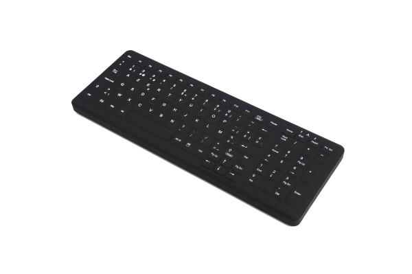 Trotz ihres robusten Aufbaus vermittelt die Tastatur ein Schreibgefühl ähnlich einer herkömmlichen Office-Tastatur – für komfortables Arbeiten ohne Kompromisse. Ein weiterer Vorteil: Die Tasten können für Reinigungs- oder Desinfektionsvorgänge gesperrt werden, was die Handhabung zusätzlich erleichtert.